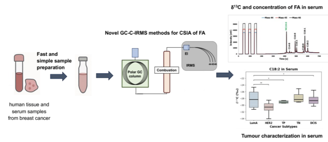 Mangeon, L. et al. Simultaneous quantification and natural 13C abundance of fatty acids in breast cancer tissues and serum by GC-C-IRMS for tumor characterization. TalantaOpen 2025