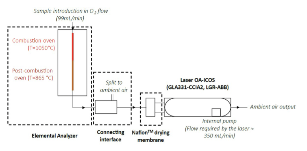 Ferrant, M. et al. Elemental Analyzer –Interface- Off Axis Integrated Cavity Output Spectroscopy (EA-OA-ICOS): A Universal Coupling for Carbon Stable Isotope Analysis of Organic Materials. Anal Chem. (in press) 2025